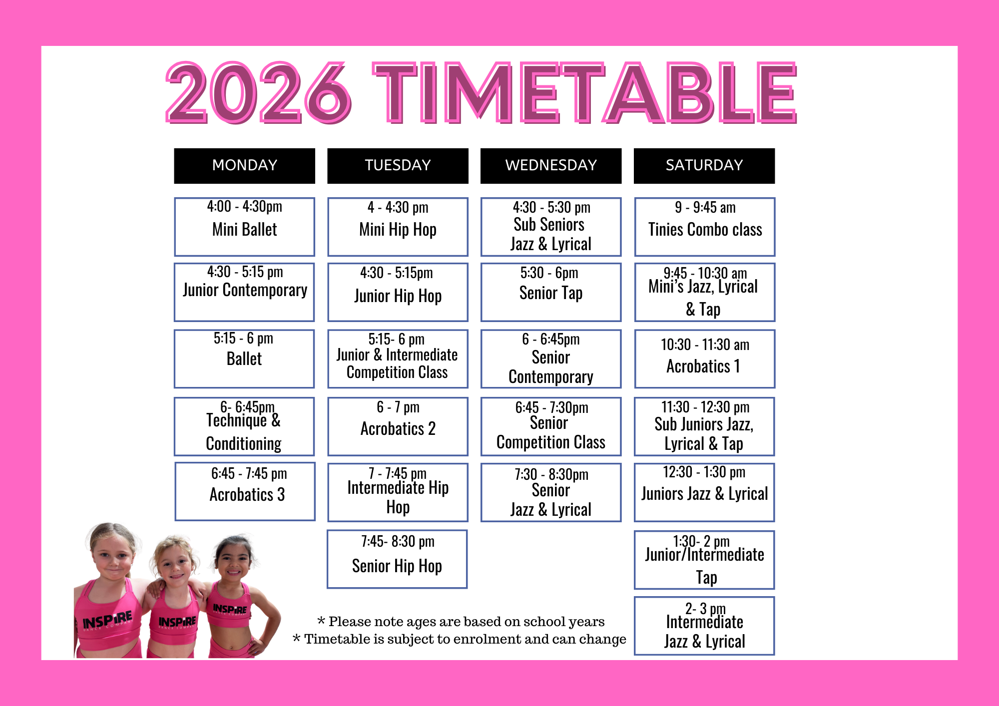 2026 Timetable